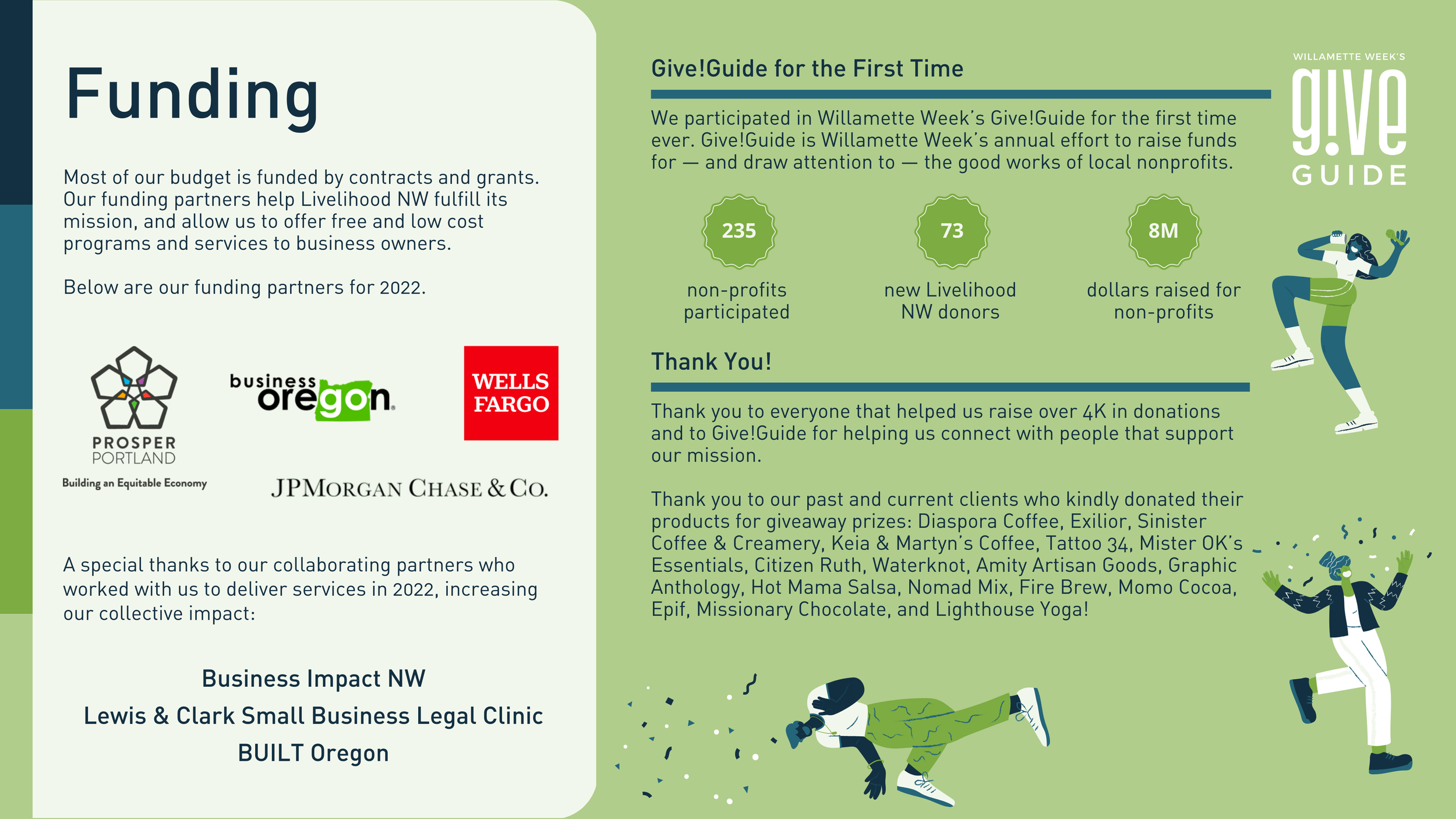 Our Partners | Business Impact NW | Lewis & Clark Small Business Legal Clinic | BUILT Oregon | Give!Guide | Our Give!Guide Profile | Amity Artisan Goods | Bellagram Telegrams | Citizen Ruth | Diaspora Coffee | Epif | Exilior | Fire Brew | Graphic Anthology | Hot Mama Salsa | Keia & Martyn's Coffee | Lighthouse Yoga | Missionary Chocolates | Mister OK's Essentials | Momo Cocoa | Nomad Mix | Sinister Coffee & Creamery | Tattoo 34 | Waterknot